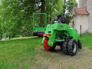 Dokážeme odstranit pařez jakéhokoli průměru a to pomocí frézy LASKI F-500H. Šířka stroje je 125cm a proto umožňuje práci i v hůře přístupném prostoru. Standardně frézujeme cca 10cm až 15cm pod úroveň terénu. Tato hloubka je plně dostačující k vytvoření nového travního drnu.